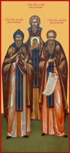 Наш православный магазин предлагает купить икону Антоний, Алипий, Феодосий Печерские преподобные, икона (арт.06640)