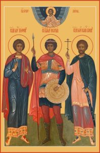 Наш православный магазин предлагает купить икону Георгий великомученик, Трифон мученик, Иоанн Воин мученик, икона (арт.06527)