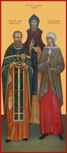 Наш православный магазин предлагает купить икону Иоанн Кронштадтский праведный, Серафим Вырицкий преподобный, Ксения Петербургская блаженная, икона (арт.06644)