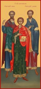 Наш православный магазин предлагает купить икону Косьма, Дамиан, Пантелеимон мученики целители, икона (арт.06645)