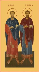Наш православный магазин предлагает купить Косьма и Дамиан мученики целители бессребреники, икона (арт.06542)