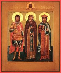 Наш православный магазин предлагает купить икону Никита великомученик, Михаил Малеин преподобный, Екатерина великомученица, икона (арт.03476)