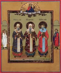 Наш православный магазин предлагает купить икону Петр, Алексий, Иона митрополиты Московские чудотворцы, икона (арт.03449)