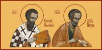 Наш православный магазин предлагает купить икону Святой Апостол Петр и Святитель Василий Великий, икона (арт.04467)