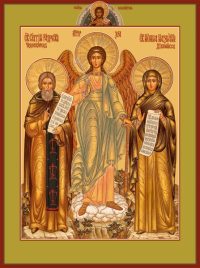 Наш православный магазин предлагает купить Святой преподобный Сергий Радонежский и Праведная Нонна Назианзская, диакониса, мать святителя Григория Богослова, икона (арт.04831 2-c)