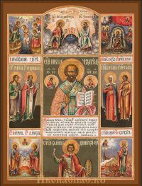 Наш православный магазин предлагает купить икону Николай Чудотворец в окружении святых UDM-029