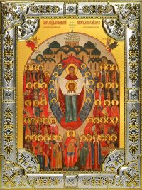 Наш православный магазин предлагает купить икону Собор святых покровителей воинства Российского, 18×24 см, в окладе B-686
