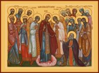 Наш православный магазин предлагает купить икону Явление Пресвятой Богородицы преподобному Серафиму Саровскому, икона (арт.06626)