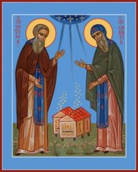 Наш православный магазин предлагает купить Зосима и Савватий Соловецкие преподобные, икона (арт.06843)