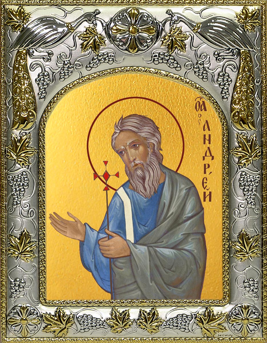Наш православный магазин предлагает купить икону Андрей Первозванный апостол, 14х18 см, в окладе A-435