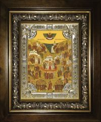 Наш православный магазин предлагает купить икону Собор всех святых, в земле Российской просиявших, в окладе и киоте 24х30 см BK-689