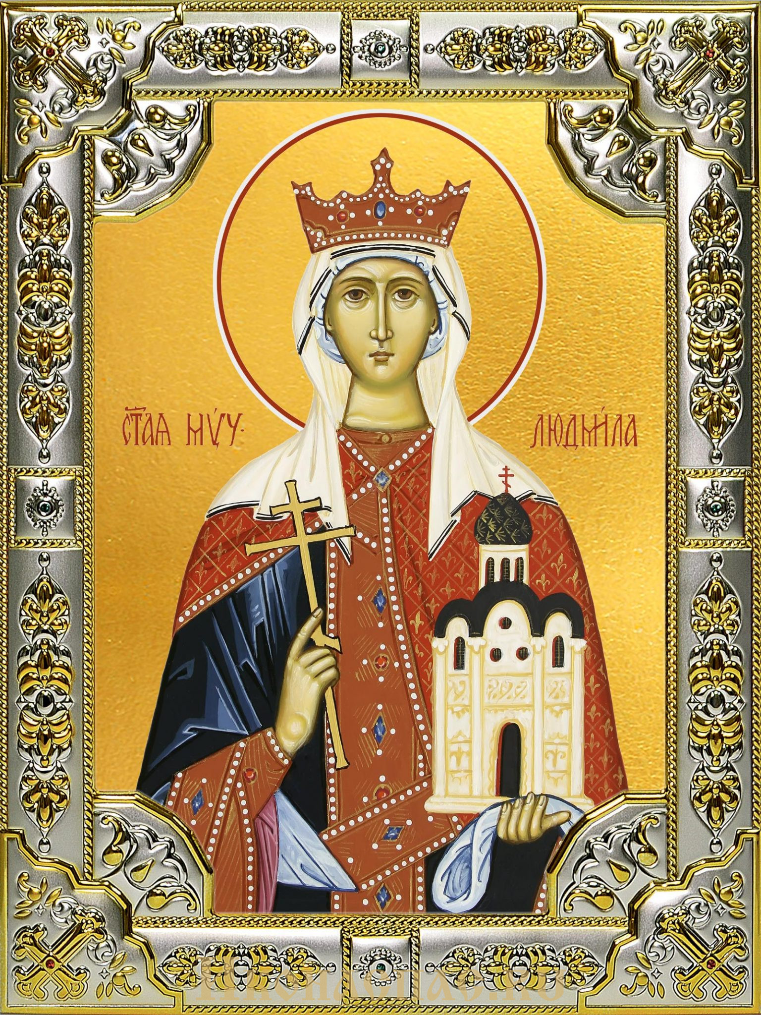 Наш православный магазин предлагает купить икону Людмила мученица, княгиня Чешская, 18×24 см, в окладе B-506