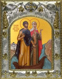Наш православный магазин предлагает купить икону Петр и Феврония благоверные, 14х18 см, в окладе A-6086
