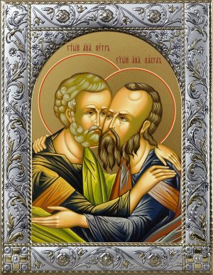 ● Оклад: Объемный штампованный оклад с рисунком (павлины и виноградная лоза).