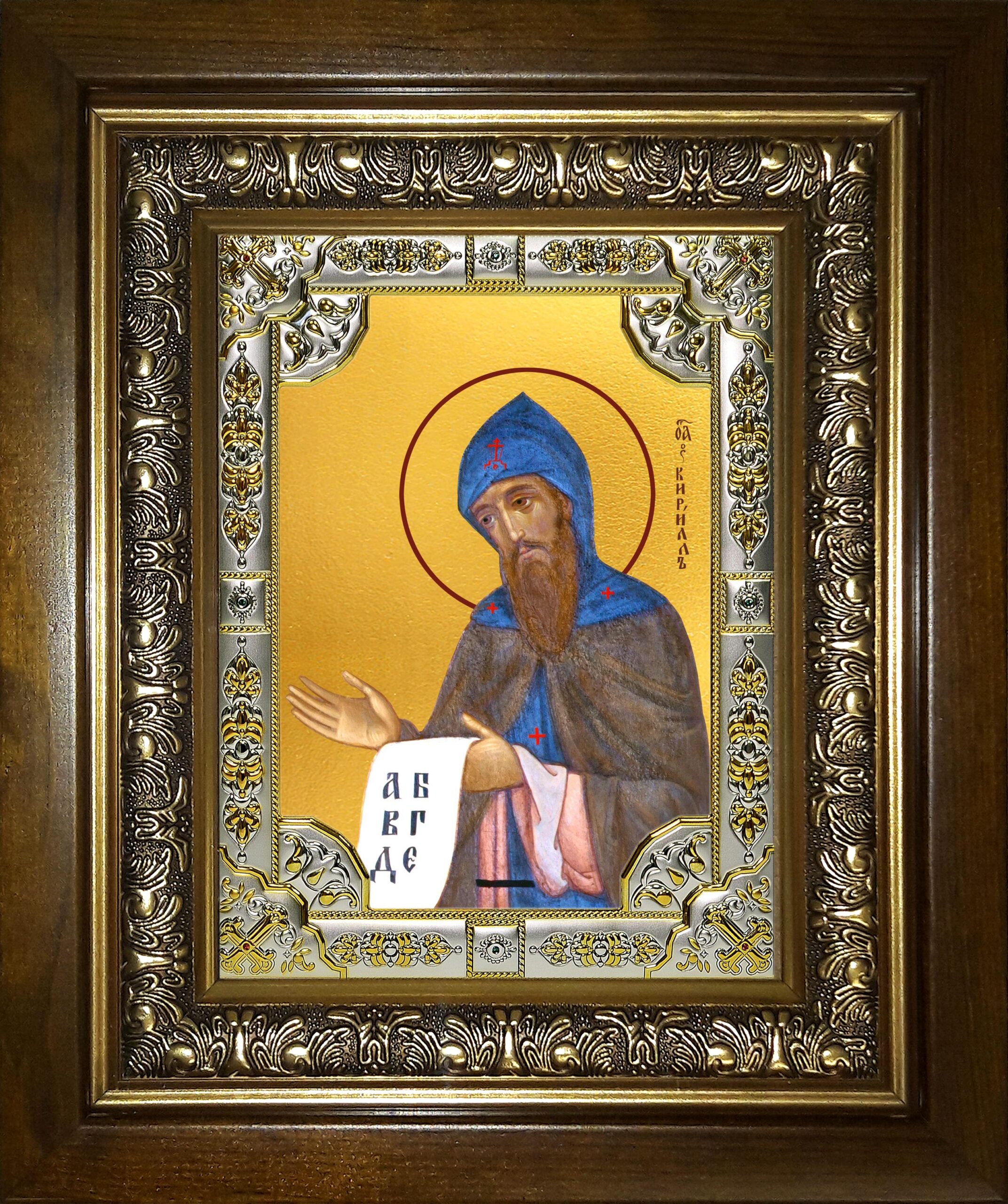 Наш православный магазин предлагает купить икону Кирилл равноапостольный, 18х24 см, в окладе и киоте BK-421