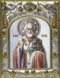 Наш православный магазин предлагает купить икону Николай чудотворец, архиепископ Мир Ликийских,святитель, 14х18 см, в окладе A-752