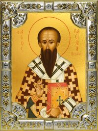Наш православный магазин предлагает купить икону Василий Великий, 18×24 см, в окладе B-749